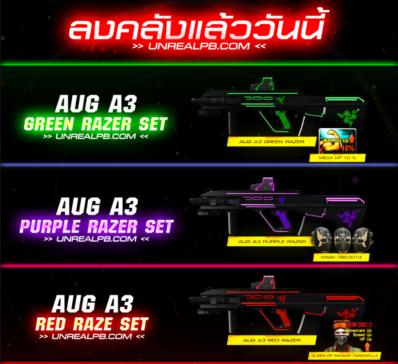 GM.P Posted February 8, 2020 Report Posted February 8, 2020 โปรโมชั่นเติมเงินรับ เบเร่ต์ฟ้า คลิก วางจำหน่าย M1887 SL ถาวร แล้ววันนี้ ! กลุ่มเซิฟเวอร์ใหม่ สำหรับพูดคุยเท่านั้น คลิก อัพเดท คลังแสง 10 กุมภาพันธ์ ยินดีต้อนรับสมาชิกใหม่ทุกท่านนะคะ ทีมงานดูแลตลอด 24 ชม พบเจอปัญหาเข้าเกมส์ไม่ได้ ติดต่อแฟนเพจได้เลย นะคะ ระบบเติมเงินกล่องสุ่ม กลับมาแล้ว ยิ่งเติมเยอะ ยิ่งได้ของแรร์ ! โปรโมชั่นเติม UNREAL GAME อัพเดท 8 กุมภาพันธ์ คลิก สมัคร CAFE ร้านเกมส์ อัพเดท 25 ธันวาคม คลิก โปรโมชั่นสมัครไอดีใหม่ อัพเดท 29 ธันวาคม คลิก ล็อคอินรับไอเท็มฟรี AUG A3 MIDNIGHT BLUE 2 3 วัน เล่นครบ 60 นาที รับไอเท็มฟรี KRISS S.V MIDNIGHT BLUE 1 3 วัน กฎห้ามเซิฟ UNREAL GAME ควรอ่านถ้าไม่อยากโดนแบน คลิก จำหน่ายซีรีย์ LATINCHAMPIONSHIP SAMURAI GSL2014 จำหน่ายเซ็ต AUG A3 RAINBOW RAZER/UPB/DEMONIC ZOMBIE SLAYER AUG A3 ASIIMOV MASK PBIC2013/MSI MIKU 2018 MIDNIGHT/RED DAWN E-SPORT/BLACK PANTHER/UNCHARTED/PRO PLAYER คำสั่งปิด/เปิด อาวุธ (หัวห้องเท่านั้น) /mask on = เปิดให้ใช้หน้ากาก /mask off = ปิดไม่ให้ใช้หน้ากาก เข้าเกมส์แล้วจะไม่มีหน้ากาก /sg on = เปิดให้ใช้ลูกซอง /sg off = ปิดไม่ให้ใช้ลูกซอง /brt on = เปิดใช้ barrett m82a1 /brt off = ปิดไม่ให้ใช้ barrett m82a1 ทุกซีรีย์ /knife on = เปิดให้ใช้มีด /knife off = ปิดให้ใช้มีด ใช้ได้แค่มีด M7เดิมๆ กลุ่มพูดคุย แอดมินดูแลอยู่ตลอดเวลา คลิก กลุ่มซื้อขายไอดี กลางผ่านแอดมินเท่านั้น คลิก กลุ่มการแข่งขัน เซิฟ UNREAL GAME คลิก